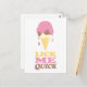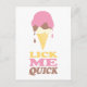 Fun lick me quick slogan text graphic postcard featuring a melting ice cream. Ideal for ice cream sellers to promote or for summer parties or promotions. Original graphic art by Sarah Trett. www.sarahtrett.com for www.mylittleeden.com
