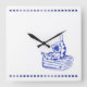 A delightful toile-inspired clock in blue willow colours featuring playful kitty cats romping in a bathroom.