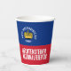 Celebrate Liechtenstein's National (Independence) Day with these striking August 15th paper cups, which feature the brilliant blue and red hues plus the ducal hat of this European microstate's flag. Customise messaging as desired. Reverse shows identical design.
