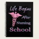 A funny Nursing School, Life Begins After Nursing School nurse design with a Caduceus medical symbol. This makes for the perfect gift for a Registered Nurse, RN, nursing student, or a LPN.