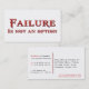 This design is bold and to the point, failure is not an option. The text features a red bold metallic look. Inspired for fitness trainers and life coaches.