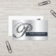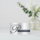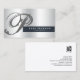 This elegant professional life coach business card features an elegant silver texture background. Your monogram letter appears in a big bold script letter in a subtle dark grey hue. Your name and title appear in a trim text panel that extends from the lower right side of the card towards the middle. Perfect for professional, management, services, personal services, private services, public services, trade skills, special skills themes.