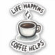 Embrace life's unpredictable moments with this motivational sticker that says 'Life Happens, Coffee Helps,' adorned with a comforting cup of coffee. It's the perfect gift to add a dash of inspiration to your day. Order yours now!