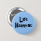 "Life Happens" pin button. Background colour can be customised.