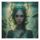 A serene aquatic scene features a woman surrounded by swirling water and fish, her hair flowing gracefully around her. Light filters through the water, highlighting her ethereal and mystical presence.