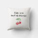 This cute pillow features a whimsical red cherry fruit watercolor illustration with green leaves. Elegant vintage script says "life is a bowl of cherries," for a chic and simple retro design.