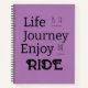 "Life is a Journey Enjoy the Ride" is an inspirational phrase to motivate you while planning your dreams. Perfect gift for friend or loved one. Black lettering on lilac background. Lilac colour on both back and front covers.