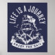 Sailing illustration with "Life is a journey, enjoy the sail" text design and sailing ship, seagulls, and waves decoration for everybody who loves sailing