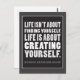 Life isn't about finding yourself. Life is about creating yourself. A reminder that we make our own destiny and become who want ourselves to be. Black and white design, with bold typography in charcoal tones of grey and white.