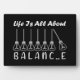 life is all about balance, balance, brush script, bulb, cursive, life quote, light bulbs, pendulum, life saying, script lettering, incandescent lamp, balance quote, pendulum balls, balance wheel, script typography