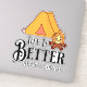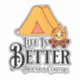 Camping quote. Life is better around a campfire. Cute Kawaii style cartoon art with a tent and fire.