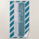 Take this fun beach towel to your beach cottage. It features a beautiful photo of teal blue ocean water and white sand and white handwritten style text on top of the photo reads: Life is better at the Beach. The design is accented with teal and tan diagonal stripes. Personalise this towel with your name.