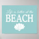 This adorable wall art will be the perfect addition to your beach themed home decor. This sign features white text "Life is better at the BEACH" with a white shell, on a ocean blue coloured background.
