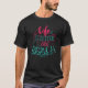 I give wanted to give this a 4 instead of a 5 because these Basic DARK T0shirts run unexpectedly SLIM or Narrow. Which is great if you do not have a potbelly, but I have a paunch. It isn't the shirt's fault that I've got a beer belly. The design and shirt itself is a quality cotton shirt. The color is more of a deep purple, but still a very pretty color. The Basic DARK T-shirts run a bit SLIMMER than the Basic Ts. The neck is a fraction narrower (or seems to be narrower) also. I'm a paunchy middle-aged woman and my neck is 12 inches (31cm) thick and the neckline fell about the same as in the photo of the man, and I had the desire to tug it a bit. So if you're a thick necked man or like loose shirts, be aware these are slimmer shirts. Once I get rid of my lockdown paunch it'll look great. The shirt washed well in cold water with no apparent bleeding. We don't have a dryer, so it hung dry. Did not shrink. Love the colors and the design. The design looks smaller on my shirt than it does on the model on-line. But still, it looks good on the shirt. The printing looks as it does on the model, just the size seems fractionally smaller. Washed garment in cold water, hung dry and design appeared unaffected.