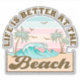 Life Is Better At the Beach text featuring a tropical beach with palm trees and waves summer graphic.