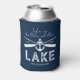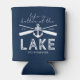 Stylish lake house can cooler featuring a navy blue background that can be changed to any colour, boat oars, an anchor, the cute saying "life is better at the lake", your family name, and the year established.