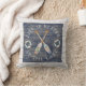 A lake house throw pillow featuring painted oars and lifesavers on dark wood and light wood. A summer cottage home decor item to brighten your stay.