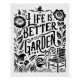 A cute typography style poster for gardeners or nature and plant lovers, featuring garden flowers, garden chair and basket of flowers. A garden scene. Gift it to a person with a green thumb or simply who loves natures plants and flowers.