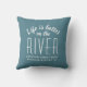 Design features Life is Better on the River Quote Added to trendy teal with white font. Add family name & location or customise with two lines of short text. Colour of background and fonts are easily changed in design tool section. Be sure to check out our other quote pillows!