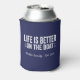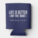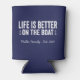 LIFE IS BETTER ON THE BOAT Family Name with Established Year Can Cooler. Personalise this Can Cooler by entering your boat name or family name and established date in the custom fields provided. *Shown in white text on navy background. *Cooler background colour can be changed by clicking on "Customise it" button. Makes a perfect gift for the boat lover!