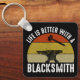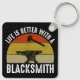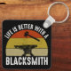 Life Is Better With A Blacksmith. This vintage funny quote accessory is a great blacksmith gift for anyone who's a blacksmith & loves forging & metalworking. If you like to forge in fire in your garage or shed, and you're a blacksmith, metalworker, farrier or knifemaker, & love working with forged metal, then this design is for you! Features a distressed graphic of a hammer and anvil.