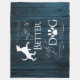 Stay cosy on chilly fall evenings with a Life is better with a Dog Fleece Blanket. Blanket design features text that says "Life is better with a Dog." with a paw print and dog silhouette embellishment against a deep blue rustic wooden background. Additional gift items available with this design as well.