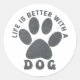 Life is Better With A Dog Grey Textured Text Classic Round Sticker