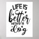 Add some flair to your home decor with this cute life is better with a dog black and white modern typography poster! Great for any animal lover!