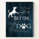 A perfect notebook for those who life much better with a dog in it. This notebook design features text that says "Life is better with a Dog." with a paw print and dog silhouette embellishment against a deep blue rustic wooden background. Additional gift items available with this design as well.