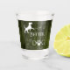 Create a unique shot glass with a Life is better with a Dog Shot Glass. Shot Glass design features text that says "Life is better with a Dog." with a paw print and dog silhouette embellishment against a deep green rustic wooden background. Additional gift items available with this design as well.