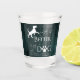 Create a unique shot glass with a Life is better with a Dog Shot Glass. Shot Glass design features text that says "Life is better with a Dog." with a paw print and dog silhouette embellishment against a deep teal rustic wooden background. Additional gift items available with this design as well.