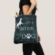 A perfect tote bag for those who find life to be much better with a dog in it. Tote bag design features text that says "Life is better with a Dog." with a paw print and dog silhouette embellishment against a deep teal rustic wooden background. Additional gift items available with this design as well.
