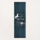 The Life is better with a Dog Yoga Mat features text that says "Life is better with a Dog." with a paw print and dog silhouette embellishment against a deep blue rustic wooden background. Additional gift items available with this design as well.