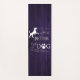 The Life is better with a Dog Yoga Mat features text that says "Life is better with a Dog." with a paw print and dog silhouette embellishment against a deep purple rustic wooden background. Additional gift items available with this design as well.