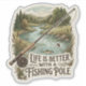 The phrase “Life is better with a fishing pole” is seamlessly integrated in a playful yet readable font, giving the design personality without overwhelming the illustration. Printed on durable vinyl with crisp detail, this sticker is perfect for decorating tackle boxes, coolers, water bottles, kayaks, journals, laptops, or any surface that could use a touch of river‑day serenity.