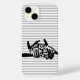 NewparkLane - Black and white phone case, with a black cat and slogan 'Life is better with cats' in fun typography, against a grey and white striped background.