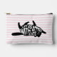 NewparkLane - Cute cosmetic bag, featuring a black cat with qoute 'Life is better with cats' in fun typography, against a blush pink and white striped background.