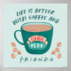 This graphic features the quote, "Life is better with coffee and FRIENDS™."
