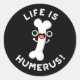 Life Is Humerus Funny Bone Pun Dark BG Classic Round Sticker