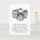 A black and white greeting card with a picture of a camera with an enlightening and motivating quote about life and how we should tune our perspective. "Life is like a camera. Focus on what’s important, capture the good times, develop from the negatives, and if things don’t turn out – take another shot." Author of quote is unknown. Design and quote is great for friends who are photographers or any friend who is in need of a pick me up in his or her life. Personalise text inside greeting card.
