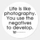 This stylish and fun graphic design with the phrase "Life is like photography. You use the negatives to develop" is perfect for the photographer looking for something unique for their wardrobe.