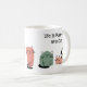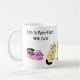 Funny cat mug featuring five colourful doodle cats around the bottom of the mug. At the top of the mug is a quote saying "Life Is Purr-fect With Cats" in black lettering. A cute adorable design perfect for cat lovers.