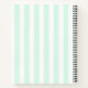 Spiral notebook funny quote with an illustration of a 3 scoop ice cream sundae with colourful sprinkles. An ice cream cone with scoops of chocolate, strawberry and vanilla. A bowl of neopolitan ice cream with a cherry on top. Strawberries and a pineapple fruit sit beside the bowls. Mint green and white stripes pattern in the background.