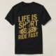 Life Is Short, Ride Fast design features dynamic text with a bicycle graphic, capturing the thrill of speed and adventure. It's for riders and adrenaline seekers.