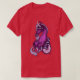 I give wanted to give this a 4 instead of a 5 because these Basic DARK T0shirts run unexpectedly SLIM or Narrow. Which is great if you do not have a potbelly, but I have a paunch. It isn't the shirt's fault that I've got a beer belly. The design and shirt itself is a quality cotton shirt. The color is more of a deep purple, but still a very pretty color. The Basic DARK T-shirts run a bit SLIMMER than the Basic Ts. The neck is a fraction narrower (or seems to be narrower) also. I'm a paunchy middle-aged woman and my neck is 12 inches (31cm) thick and the neckline fell about the same as in the photo of the man, and I had the desire to tug it a bit. So if you're a thick necked man or like loose shirts, be aware these are slimmer shirts. Once I get rid of my lockdown paunch it'll look great. The shirt washed well in cold water with no apparent bleeding. We don't have a dryer, so it hung dry. Did not shrink. Love the colors and the design. The design looks smaller on my shirt than it does on the model on-line. But still, it looks good on the shirt. The printing looks as it does on the model, just the size seems fractionally smaller. Washed garment in cold water, hung dry and design appeared unaffected.