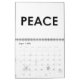 this calendar contains- words like: LIFE, HOPE, PEACE, FREEDOM, and pictures of peace signs and signals.