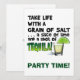 Take Life with a Grain of Salt, A Slice of Lime and a shot of TEQUILA! Tequila and Cocktail Humour from The Martini Diva featuring an illustration of a Tequila Shot with a Slice of Lime and Salt. Perfect for any party or happy hour celebration, Bachelor or Bachelorette Parties or any cocktail party.