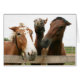 Two horses and a mule acting silly, actually going through the begging routine for a bit of apple. Photo card.