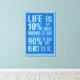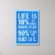 "Life is 10% of what happens to you and 90% of how you react to it". See my store for more items with this quote.