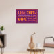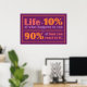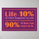 "Life is 10% of what happens to you and 90% of how you react to it". See my store for more items with this quote.
